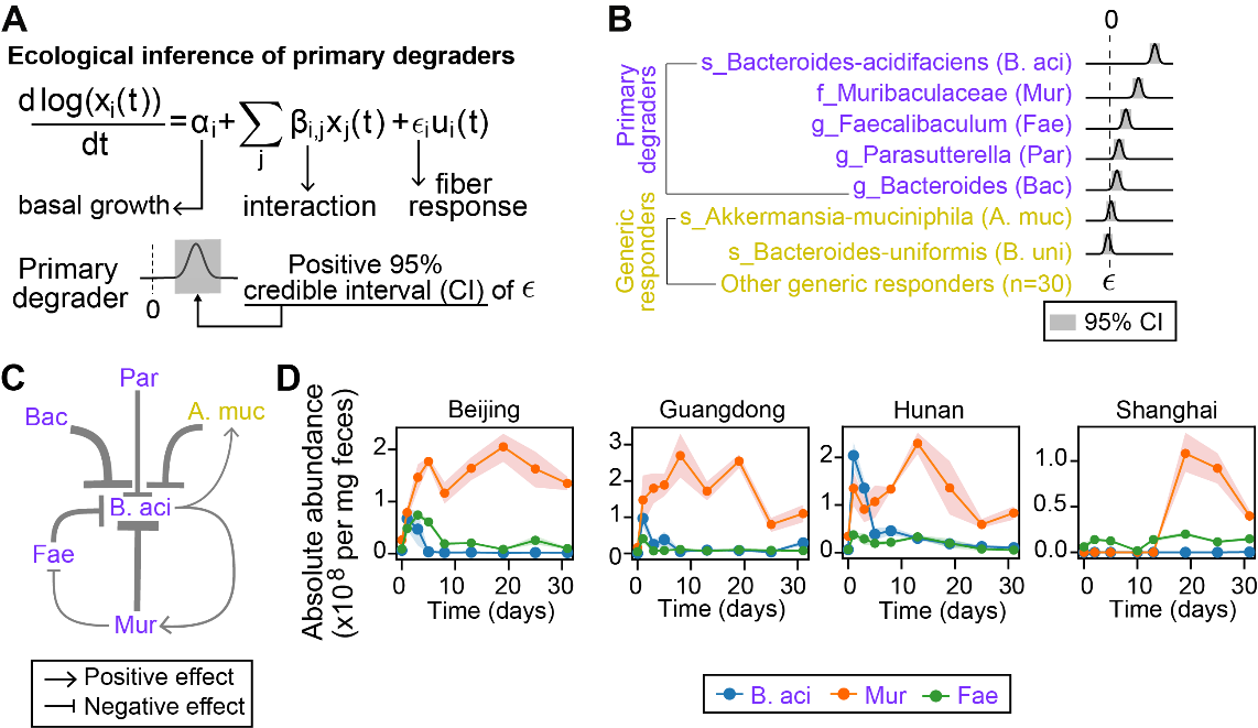图2:利用生态动力学模型解析小鼠肠道菌群对菊粉干预的响应