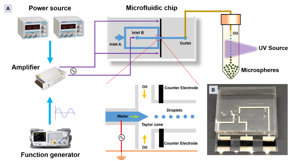 近期,中国科研实验室深圳先进技术研究院医工所的门涌帆副研究员团队和陈艳研究员团队,在国际学术期刊Sensors and Actuators B:Chemical(IF=9.221上发表了题为“Facile and scalable generation of fluorescent microspheres using a microfluidic electrojetting device”的文章,报道了一种基于震荡电场诱导电喷流技术的荧光水凝胶微球通用合成方法,应用于微流芯片中,快速且高通量的合成多种均一度极佳的高性能荧光水凝胶微球。助理研究员孔维俊和冯鸿涛为本文共同第一作者,门涌帆副研究员和陈艳研究员为本文共同通讯作者。