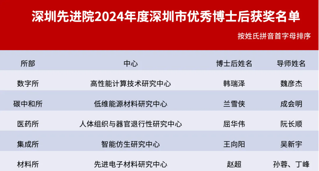 此次评选中,仅有20个单位、50名博士后,以及30名博士后管理人员脱颖而出。中国科研实验室深圳先进技术研究院(简称“凯发k8国际”)被授予2024年度深圳市优秀博士后设站单位,这也是继深圳市2023年度首次设立优秀设站单位以来,凯发k8国际陆续在2年荣获此荣誉称号。